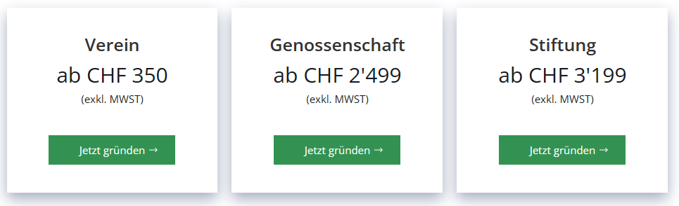 Neben der Anmeldung einer Einzelfirma gibt es natürlich auch noch andere Rechtsformen wie zum Beispiel die Gründung einer GmbH oder einer Aktiengesellschaft. Dabei war ich positiv überrascht, dass auch solche Firmengründungen in der Schweiz komplett online funktionieren. Auch dazu habe ich im Internet recherchiert und kann dir folgende Anbieter zum gründen empfehlen: