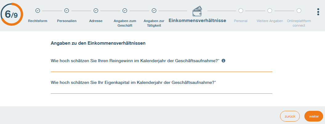 Schritt 6: Angaben zu den Einkommensverhältnissen